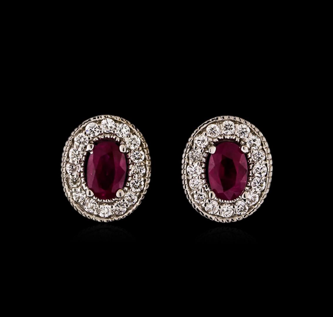 One pair of earrings featuring: 14KT white gold weighing 3.10 grams containing two rubies with an approximate total weight of 1.00ct and diamonds with an approximate total weight of 0.43ct.