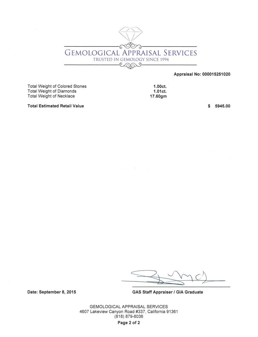 Not all Jewelry, watches or loose stones are appraised and the appraisals are provided for bidders only in certain instances at the discretion of SAA. Our appraisals are conducted by independent third-party appraisal firms. Such firms may be certified GIA Gemologists or have education in the industry or alternative certifications. Appraisals should be used for verification of gemstone and/or metal weight, size, and grade only, not actual value for resale or insurance purposes. Appraisal value should be not considered for actual value, as price varies greatly from retail locations and other merchants in different geographic locations. All Items auctioned by SAA should not be purchased with a view or expectation toward resale for appraisal price given, or to make a profit. The ultimate value for which an item can be resold may vary drastically from the appraisals listed by SAA.