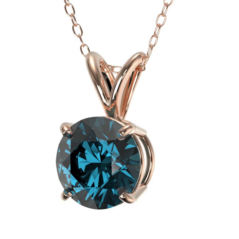36766 - REF-111X2R ---- 1.01 CTW Certified Intense Blue SI Diamond Solitaire Necklace 10K Rose Gold ---- Luxury Designer Brand Necklace Appraised at $8,900 Certificate Number US36766 10k Rose gold, Necklace Size is 16 Incehs, Necklace measuring approx. Uniform, weighing in total approx. 2 grams. Made in the USA and is stamped 10k, Main stone 1.01 carat total weight containing 1 pieces of Intense Fancy Blue color with SI quality Round shape cut Diamond , Stone #2 carat total weight containing pieces of color with quality shape cut