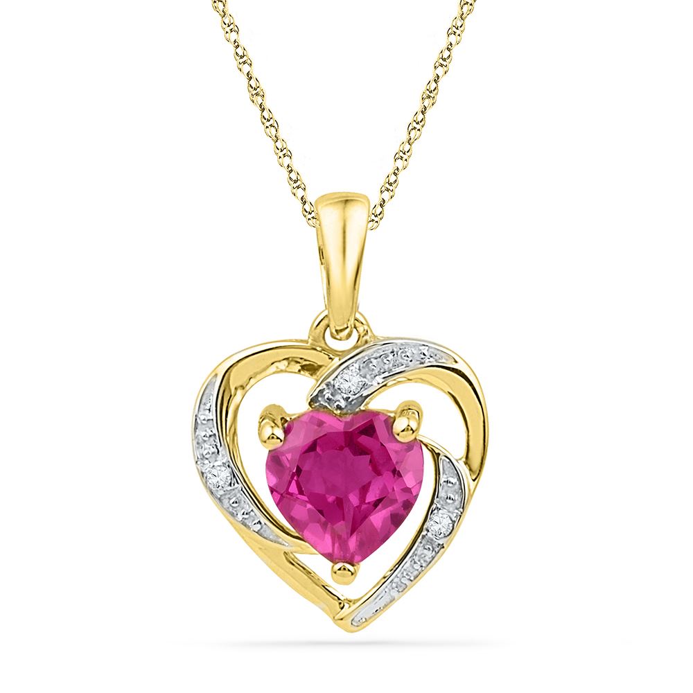 REF-6Y6X- SKU: GD100999 ---- 1.01 CTW Created Ruby Heart Love Pendant 10KT Yellow Gold