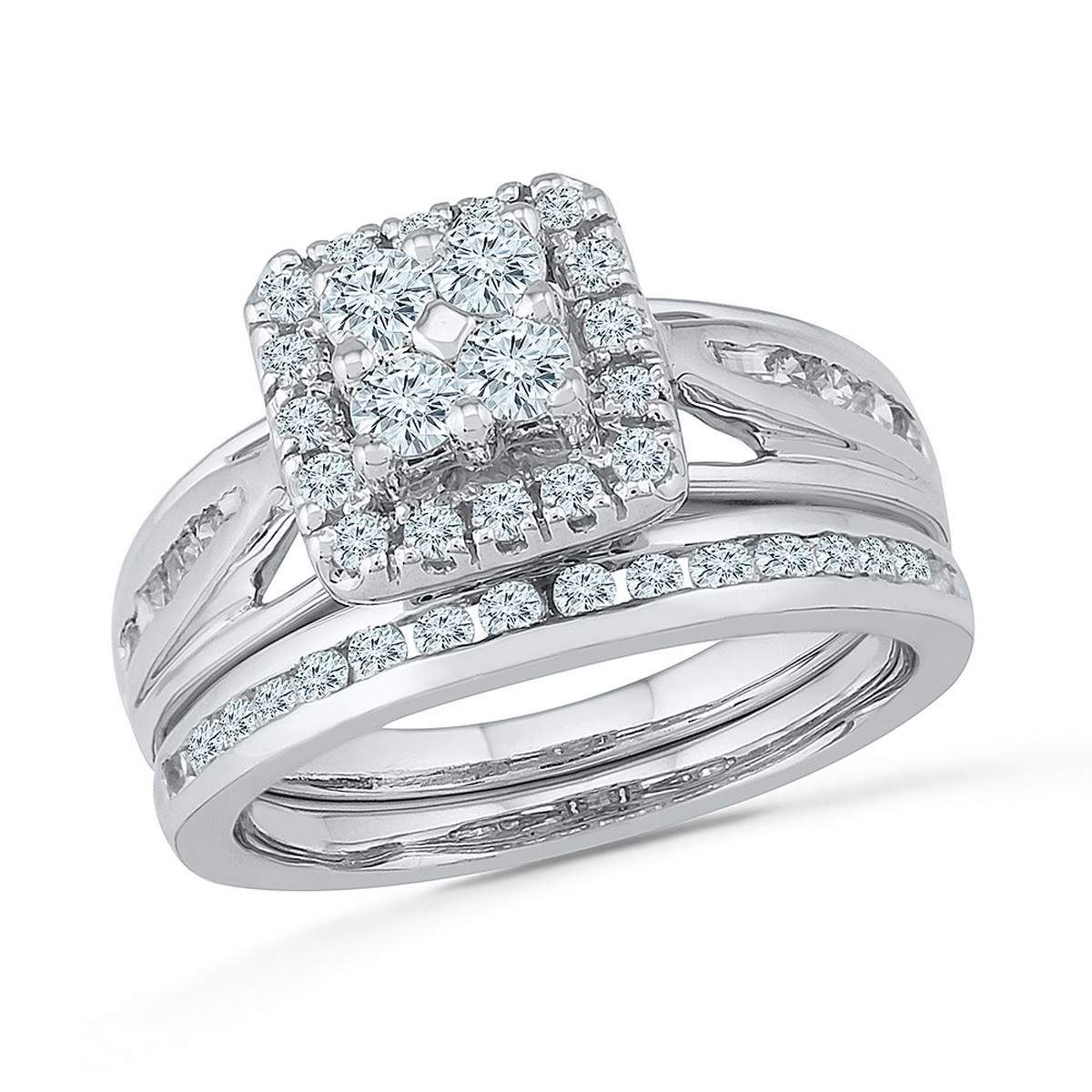 REF-101H2M- SKU: GD107671 ---- 1.01 CTW Diamond Cluster Bridal Engagement Ring 10KT White Gold