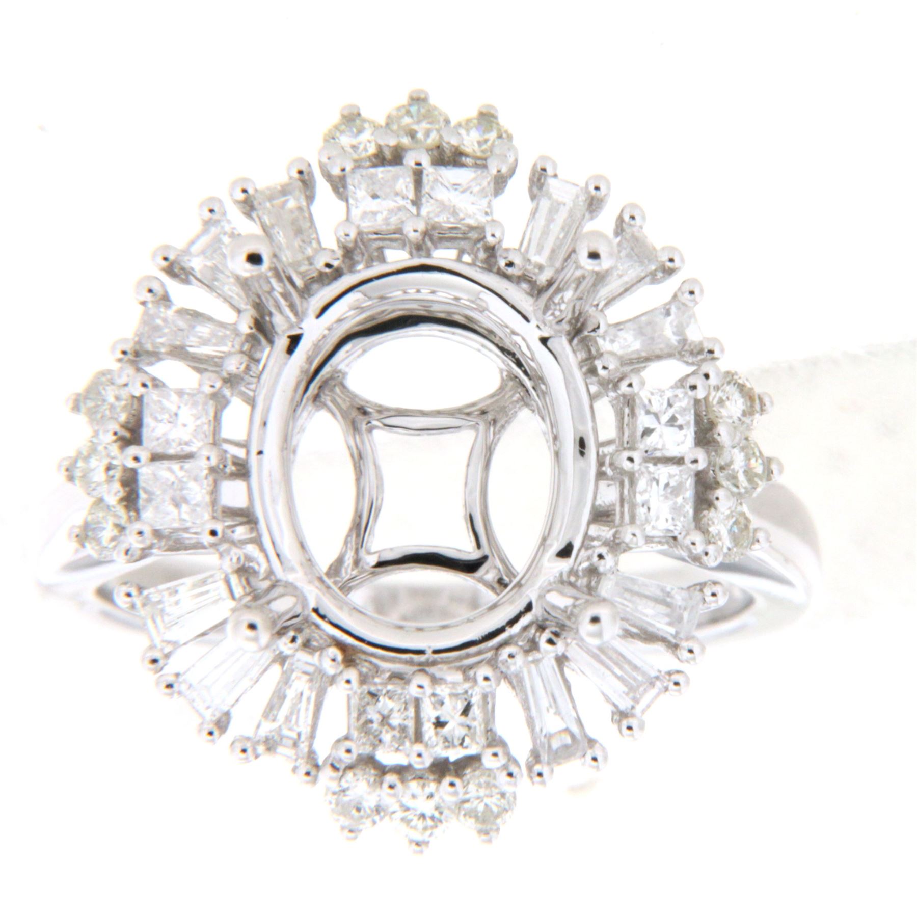 REF-124Y2X - JF415362 ---- 1.01 CTW White Round Diamond & Baguette Semi Mount Ring 14K White Gold