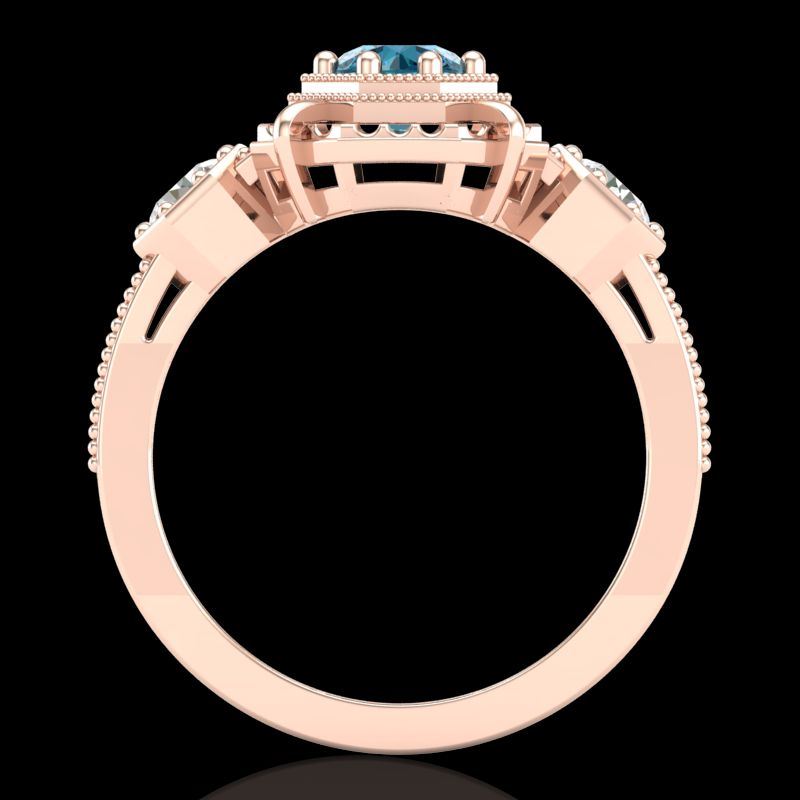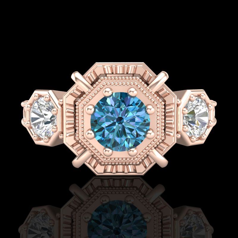 37468 - REF-165R5K ---- 1.01 CTW Fancy Intense Blue Diamond Art Deco 3 Stone Ring 18K Rose Gold ---- Luxury Designer Brand 3 stone ring Appraised at $10,000 Certificate Number US37468 18k Rose gold, 3 stone ring Size is 7, 3 stone ring measuring approx. Uniform, weighing in total approx. 5.5 grams. Made in the USA and is stamped 18k, Main stone 0.51 carat total weight containing 1 pieces of Intense Fancy Blue color with SI quality Round shape cut Diamond , Stone #2 0.5 carat total weight containing 2 pieces of H-I color with VS/SI quality Round shape cut Diamond