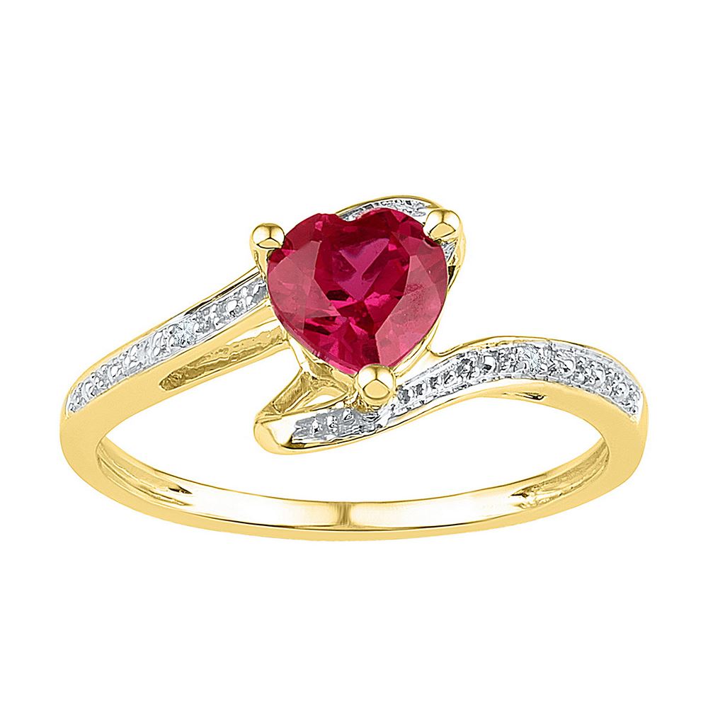 REF-13H4M- SKU: GD109648 ---- 1.01 CTW Heart Created Ruby Solitaire Diamond Ring 10KT Yellow Gold