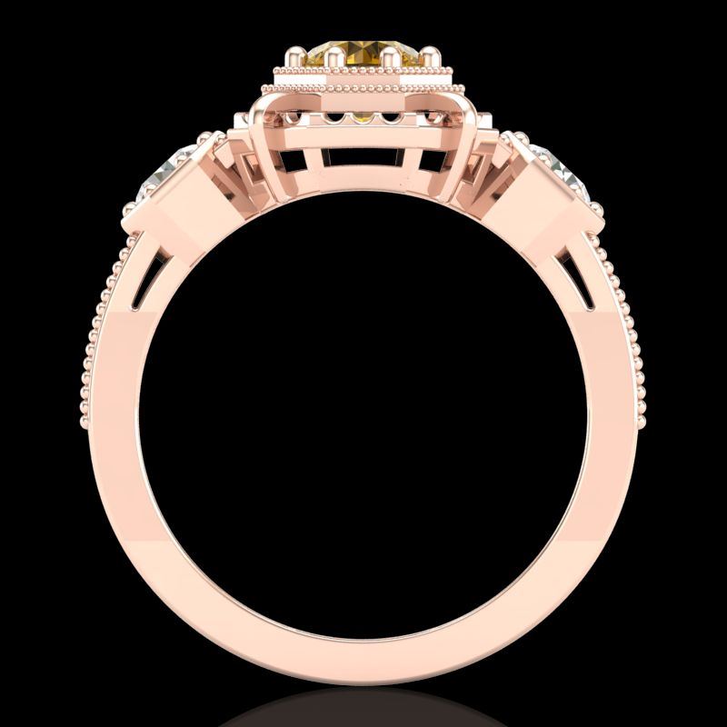 REF-165K5W -37470 ---- 1.01 CTW Intense Fancy Yellow Diamond Art Deco 3 Stone Ring 18K Rose Gold ---- Luxury Designer Brand 3 stone ring Appraised at $10,900 Certificate Number US37470 18k Rose gold, 3 stone ring Size is 7, 3 stone ring measuring approx. Uniform, weighing in total approx. 5.5 grams. Made in the USA and is stamped 18k, Main stone 0.51 carat total weight containing 1 pieces of Intense Fancy Yellow color with SI quality Round shape cut Diamond , Stone #2 0.5 carat total weight containing 2 pieces of H-I color with VS/SI quality Round shape cut Diamond