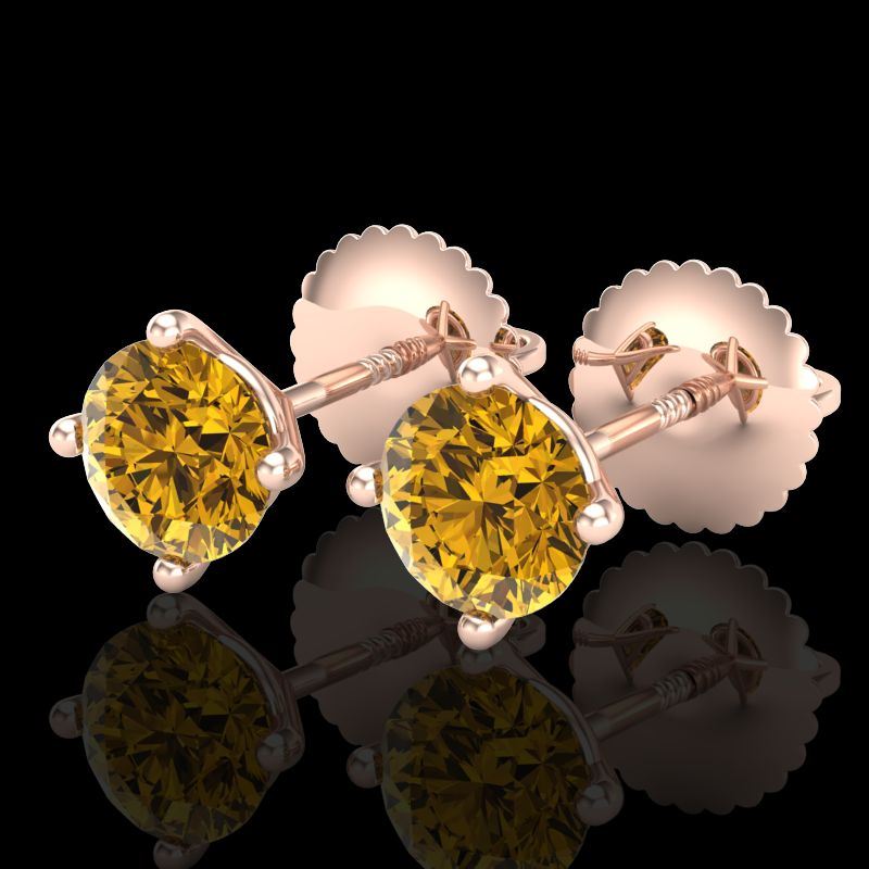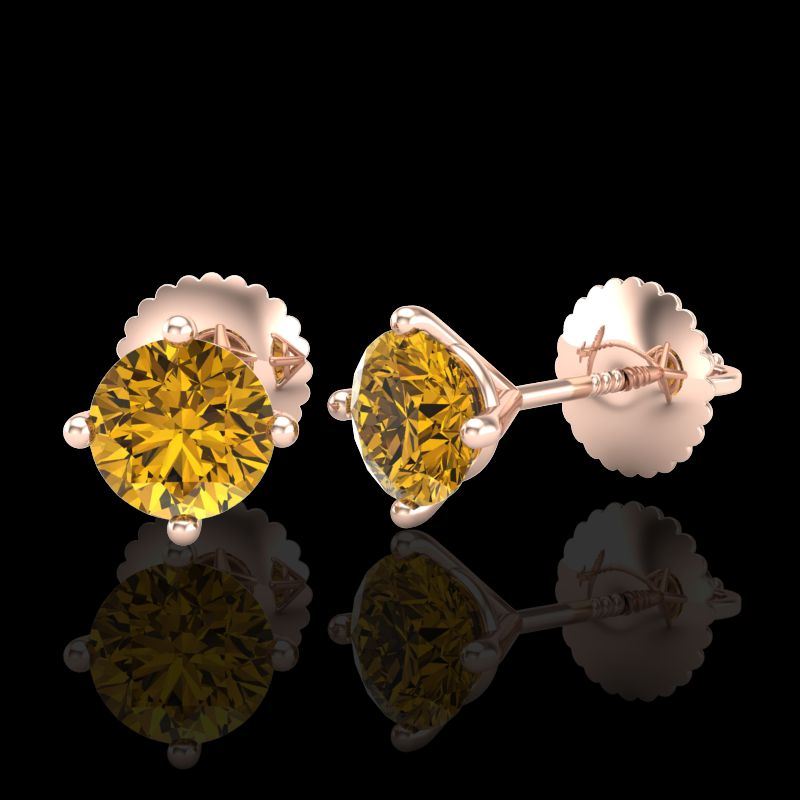 REF-100T2M -38233 ---- 1.01 CTW Intense Fancy Yellow Diamond Art Deco Stud Earrings 18K Rose Gold ---- Luxury Designer Brand Earring Appraised at $6,050 Certificate Number US38233 18k Rose gold, Earring Size is Larger, Earring measuring approx. Uniform, weighing in total approx. 2 grams. Made in the USA and is stamped 18k, Main stone 1.01 carat total weight containing 2 pieces of Intense Fancy Yellow color with SI quality Round shape cut Diamond , Stone #2 carat total weight containing pieces of color with quality shape cut