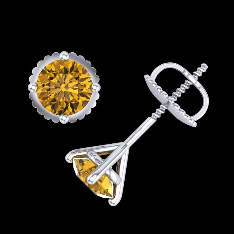 REF-100A2X -38232 ---- 1.01 CTW Intense Fancy Yellow Diamond Art Deco Stud Earrings 18K White Gold ---- Luxury Designer Brand Earring Appraised at $6,050 Certificate Number US38232 18k White gold, Earring Size is Larger, Earring measuring approx. Uniform, weighing in total approx. 2 grams. Made in the USA and is stamped 18k, Main stone 1.01 carat total weight containing 2 pieces of Intense Fancy Yellow color with SI quality Round shape cut Diamond , Stone #2 carat total weight containing pieces of color with quality shape cut