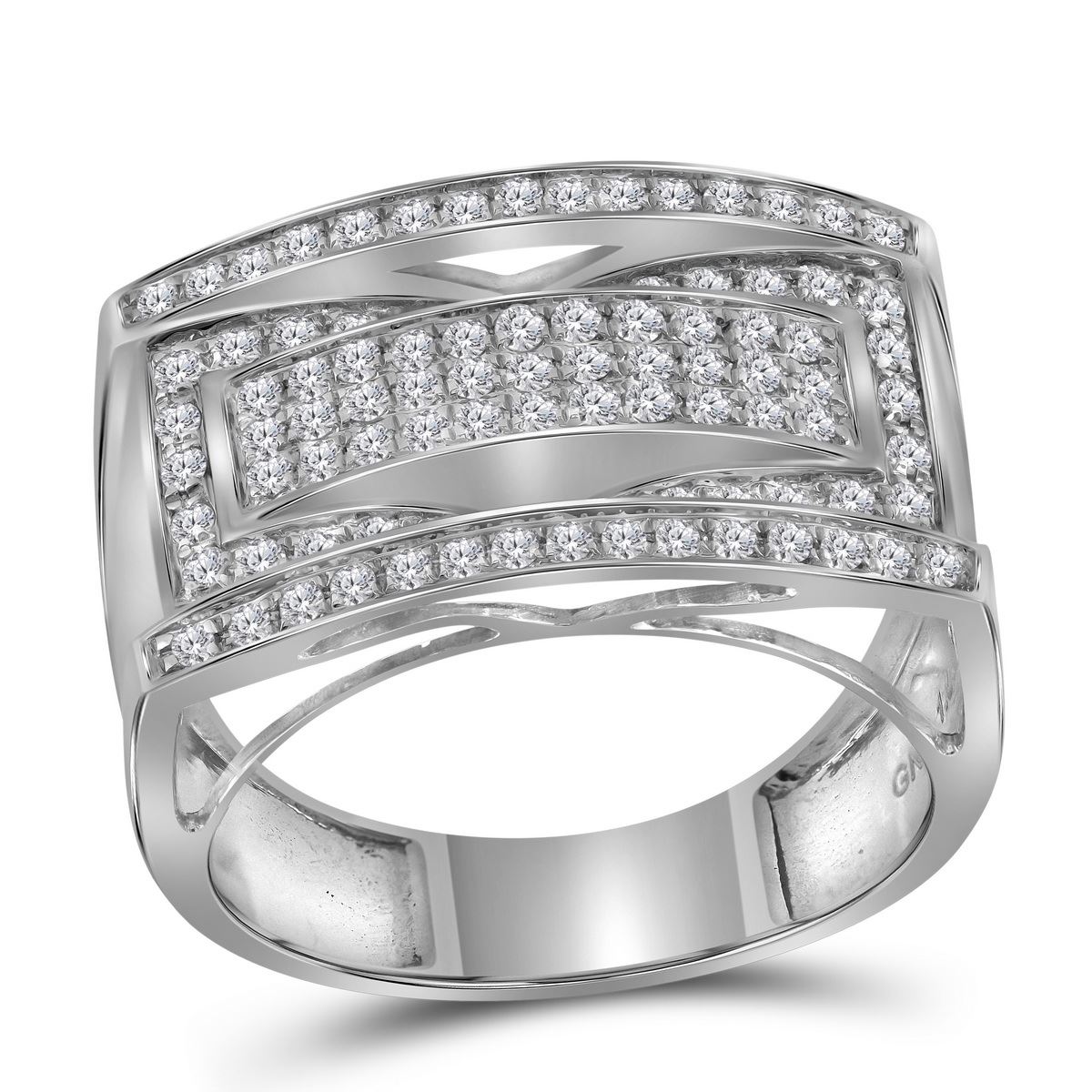 REF-75X2Y- SKU: GD40618 ---- 1.01 CTW Mens Pave-set Diamond Rectangle Cluster Fashion Ring 10KT White Gold