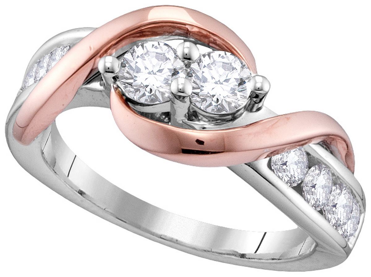 REF-149X9F ---- 1.01 CTW Natural Diamond EGL 2-stone Bridal Engagement Ring 14K Multi-Tone Gold - SKU: GD112708
