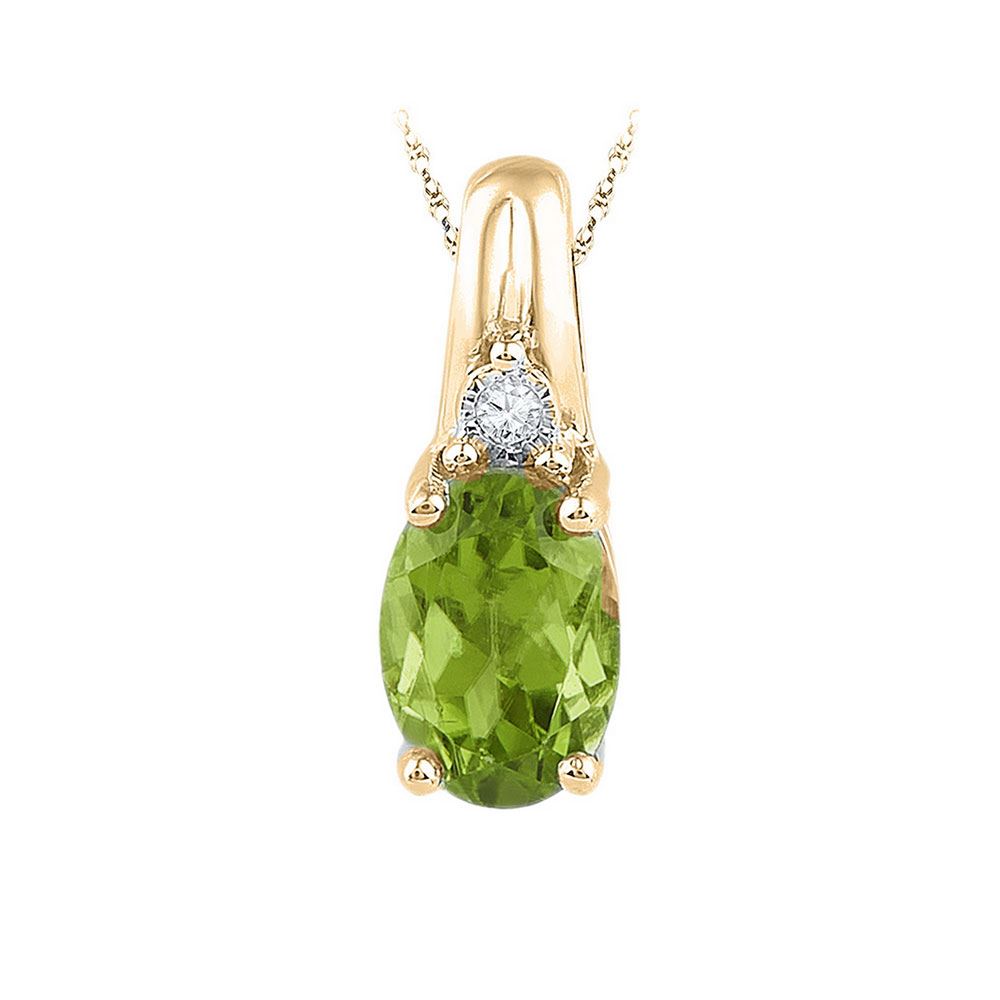 REF-6K2W- SKU: GD101331 ---- 1.01 CTW Oval Created Green Peridot Solitaire Diamond Pendant 10KT Yellow Gold