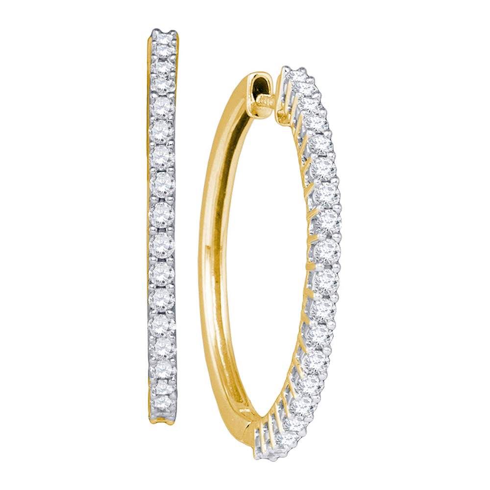 REF-104K9W- SKU: GD53676 ---- 1.01 CTW Pave-set Diamond Slender Single Row Hoop Earrings 14KT Yellow Gold