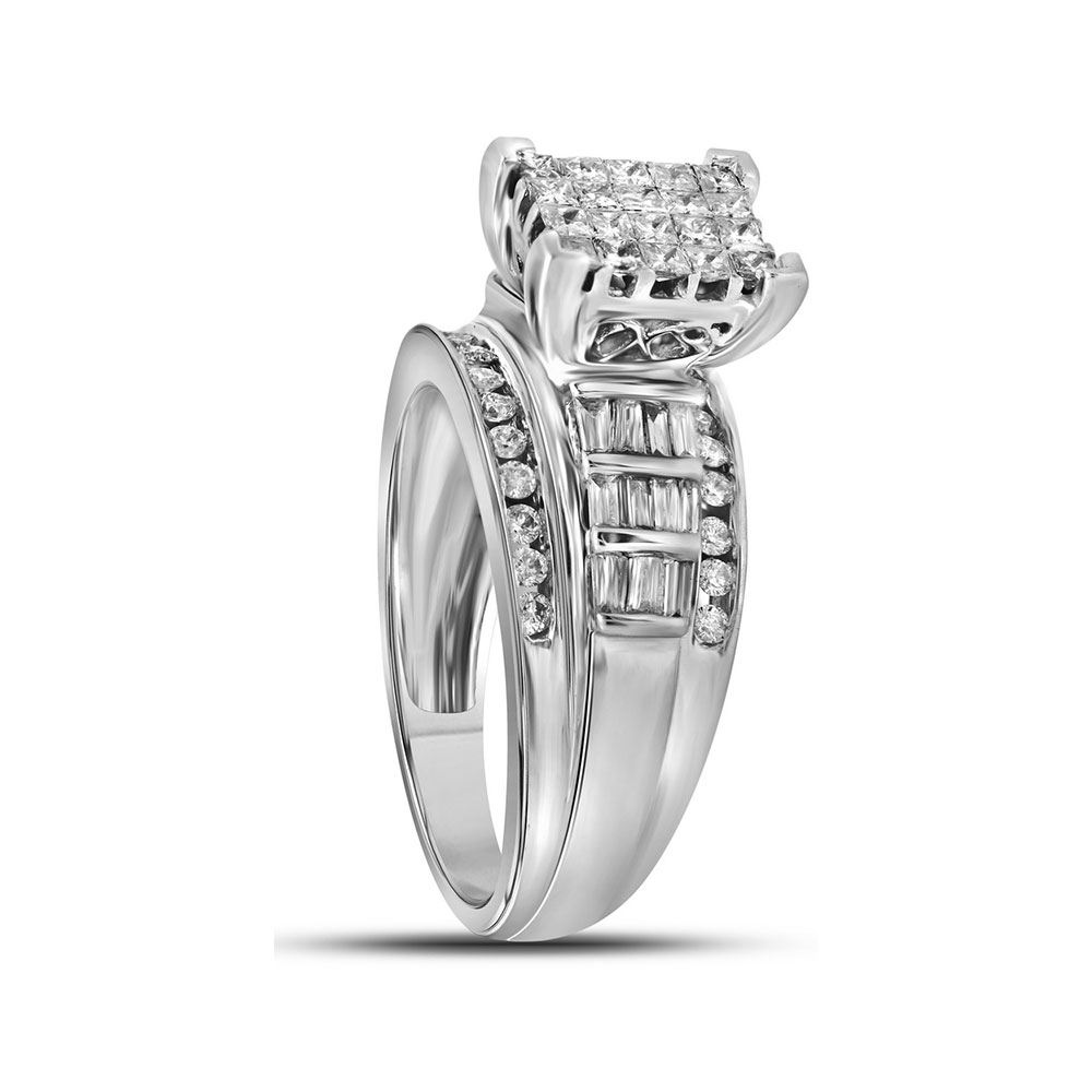 REF-59F9N- SKU: GD67772 ---- 1.01 CTW Princess Diamond Cluster Bridal Engagement Ring 10KT White Gold