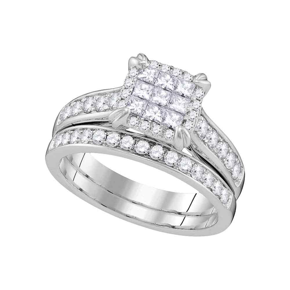 REF-116F8N- SKU: GD107366 ---- 1.01 CTW Princess Diamond Cluster Bridal Engagement Ring 14KT White Gold