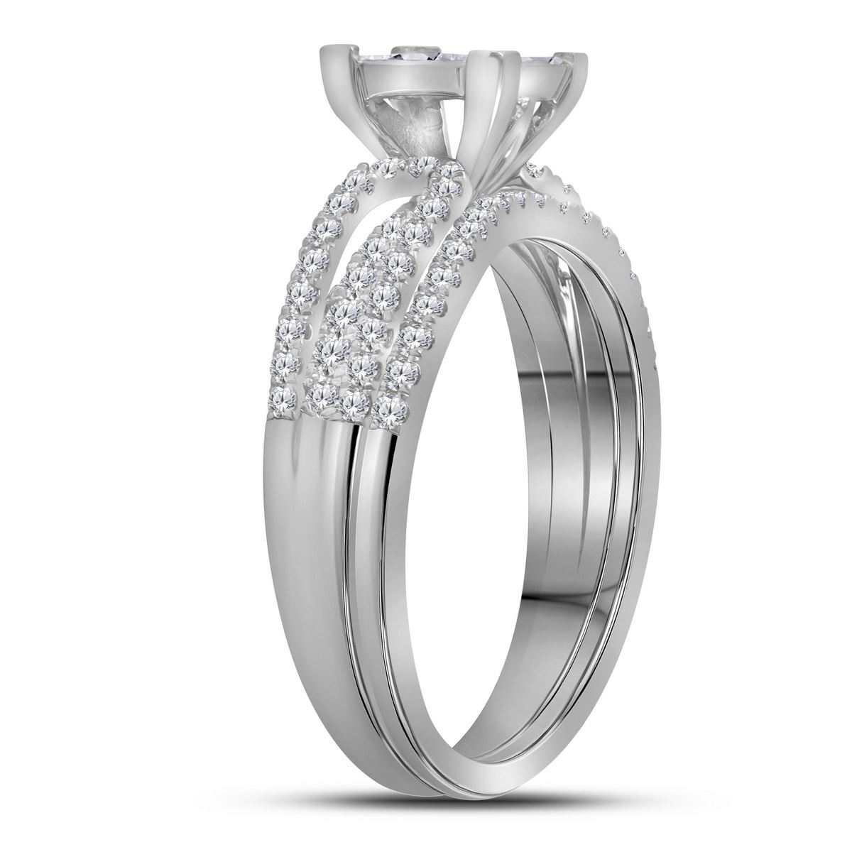 REF-89N9F- SKU: GD116727 ---- 1.01 CTW Princess Diamond Cluster Bridal Engagement Ring 14KT White Gold