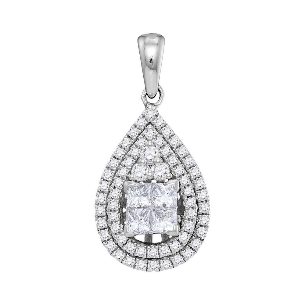 REF-89X9Y- SKU: GD104798 ---- 1.01 CTW Princess Diamond Teardrop Cluster Pendant 14KT White Gold