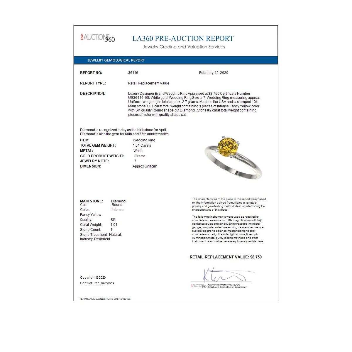 REF-153W4H - SKU: 36416 ---- 1.01 ctw Certified Intense Yellow Diamond Engagment Ring 10k White Gold