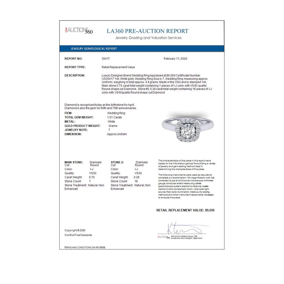 REF-182H9R - SKU: 30417 ---- 1.01 ctw Certified VS/SI Diamond Solitaire Halo Ring 14k White Gold