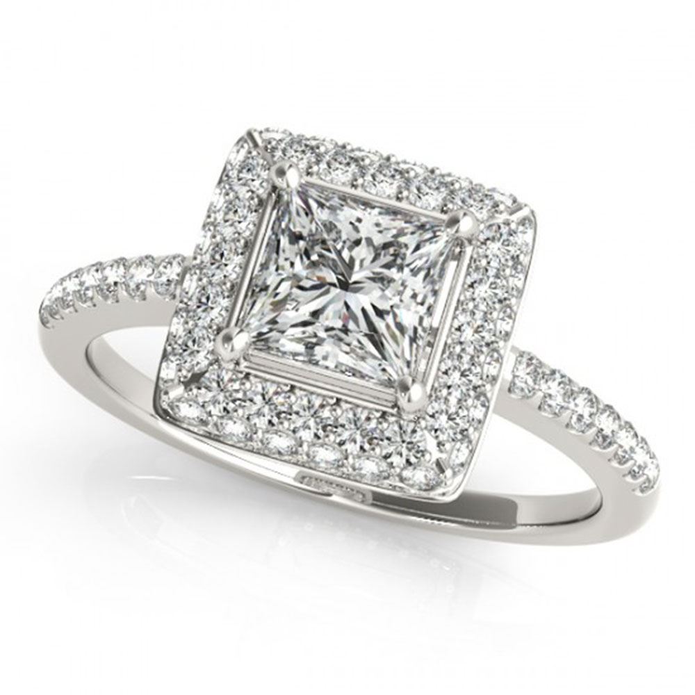 REF-111W8H - SKU: 31349 ---- 1.01 ctw Certified VS/SI Princess Diamond 2pc Set Halo 14k White Gold