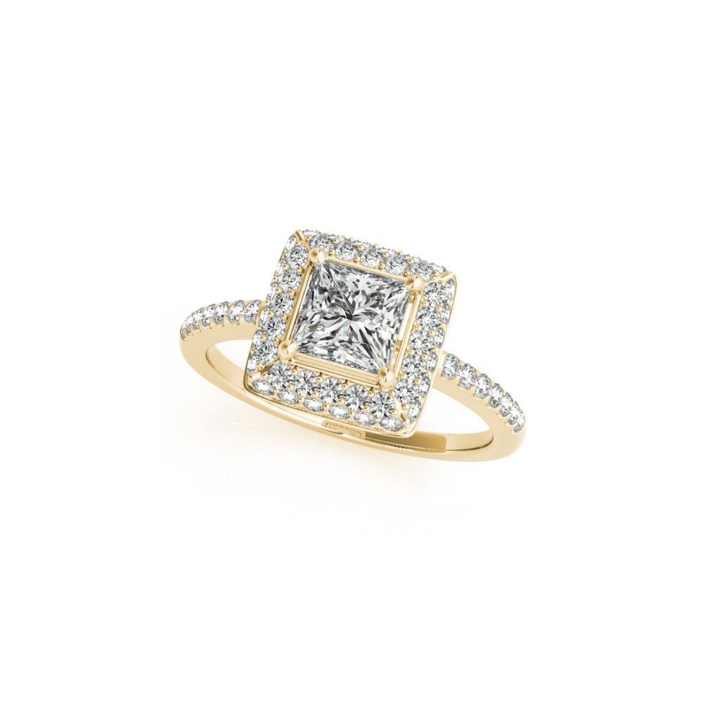1.01 ctw Certified VS/SI Princess Diamond 2pc Set Ring Halo 14K Yellow Gold