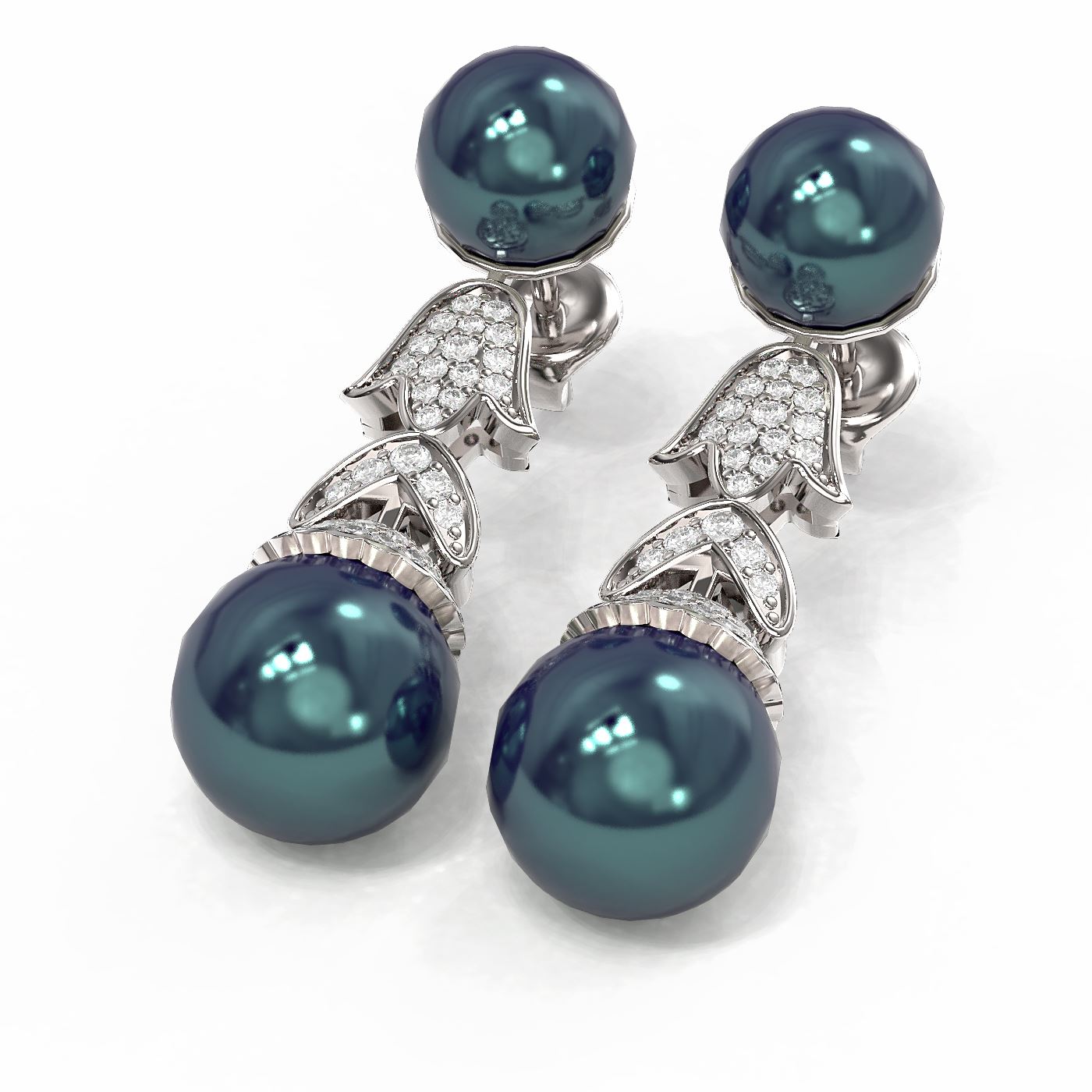 SKU: 53855 ---- 1.01 ctw Diamond & Pearl Earrings 18K White Gold