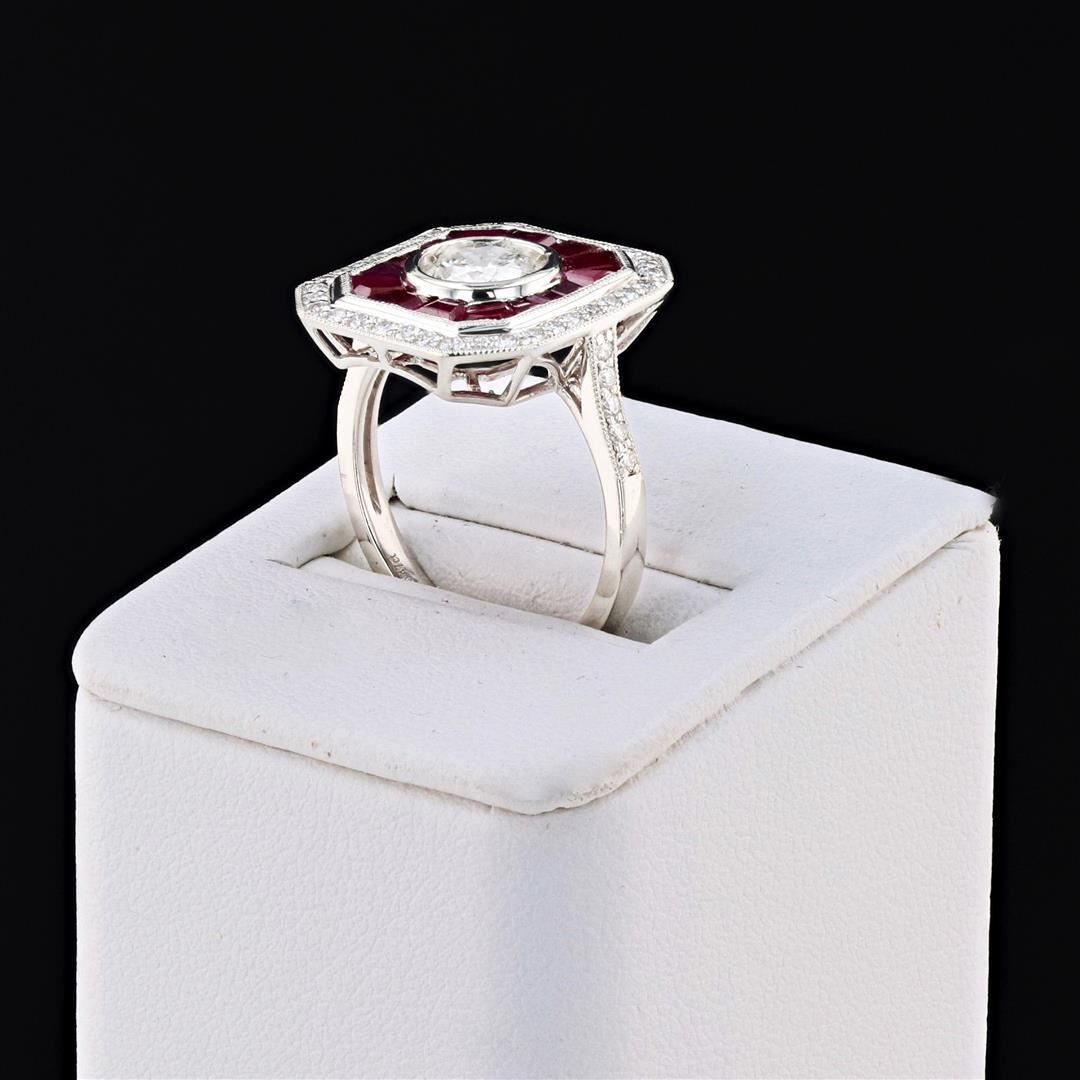 1.01ct Diamond and 2.11ctw Ruby Platinum Ring (1.48ctw Diamonds). Name of Article: Lady's Diamond and Ruby Ring Setting: Platinum Mounting [8.00 gms] Cut: Round Brilliant Color: J Clarity: I2 Measurements: 6.90 x 6.80 x 3.98mm Approximate Weight: 1.01 Carat Additional Stones/Information: 36 Round Diamonds = Approx. 0.47 Cts. TWT (Color: F-G, Clarity: VS-SI) 16 Step Cut Rubies = Approx. 2.11 Cts. TWT (Color: Red, Transparency: Transparent)