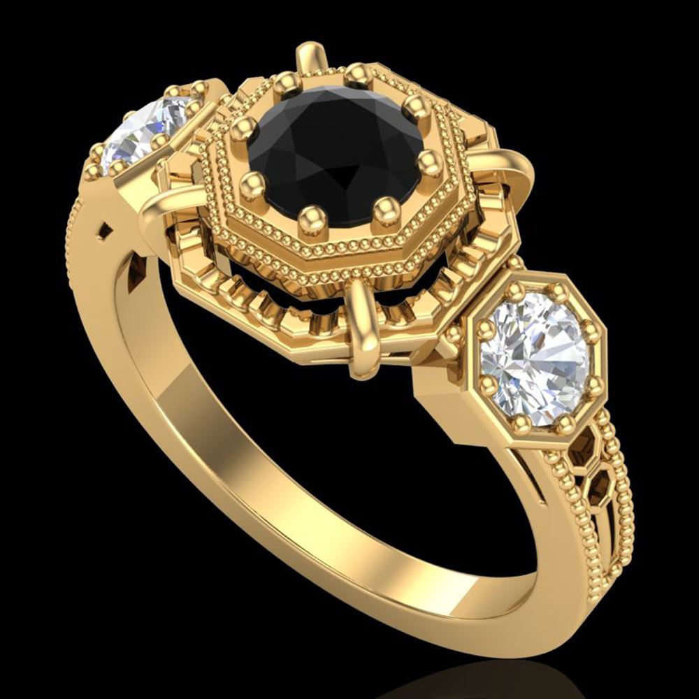 REF-96Y4X - SKU: 37466 ---- 1.01 ctw Fancy Black Diamond Art Deco 3 Stone Ring 18k Yellow Gold