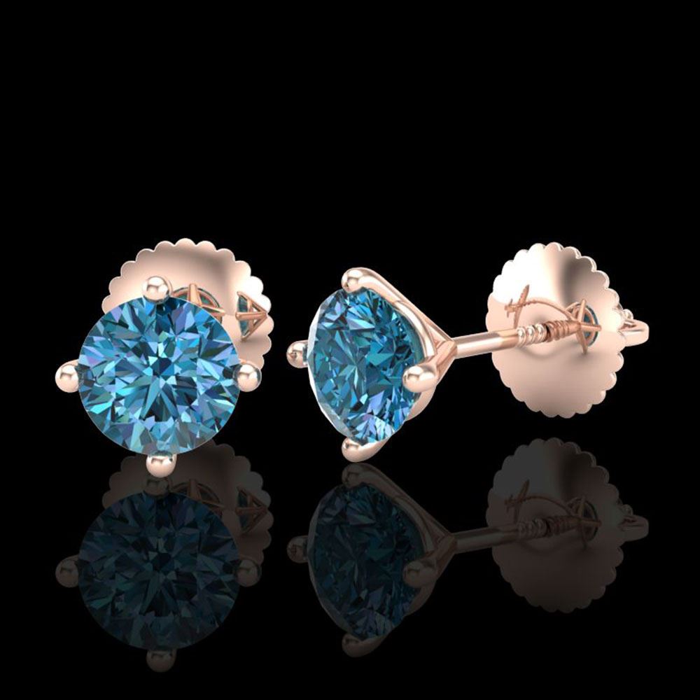 REF-75G2W - SKU: 38231 ---- 1.01 ctw Fancy Intense Blue Diamond Art Deco Earrings 18k Rose Gold