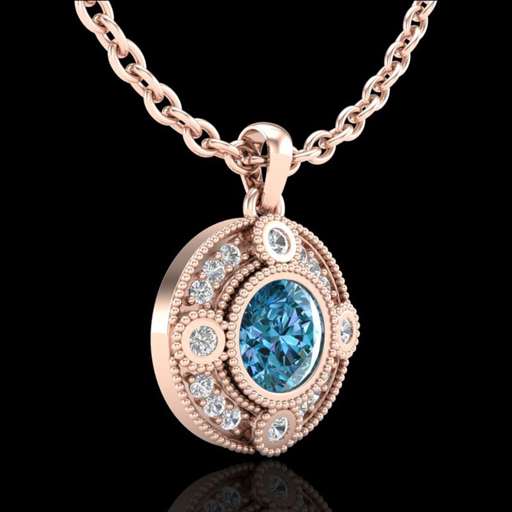 REF-119H3R - SKU: 37706 ---- 1.01 ctw Fancy Intense Blue Diamond Art Deco Necklace 18k Rose Gold