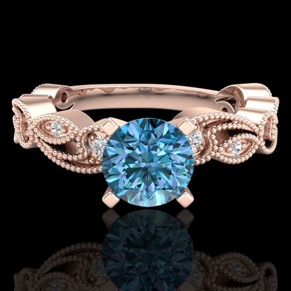 REF-143Y6X - SKU: 38273 ---- 1.01 ctw Fancy Intense Blue Diamond Art Deco Ring 18k Rose Gold