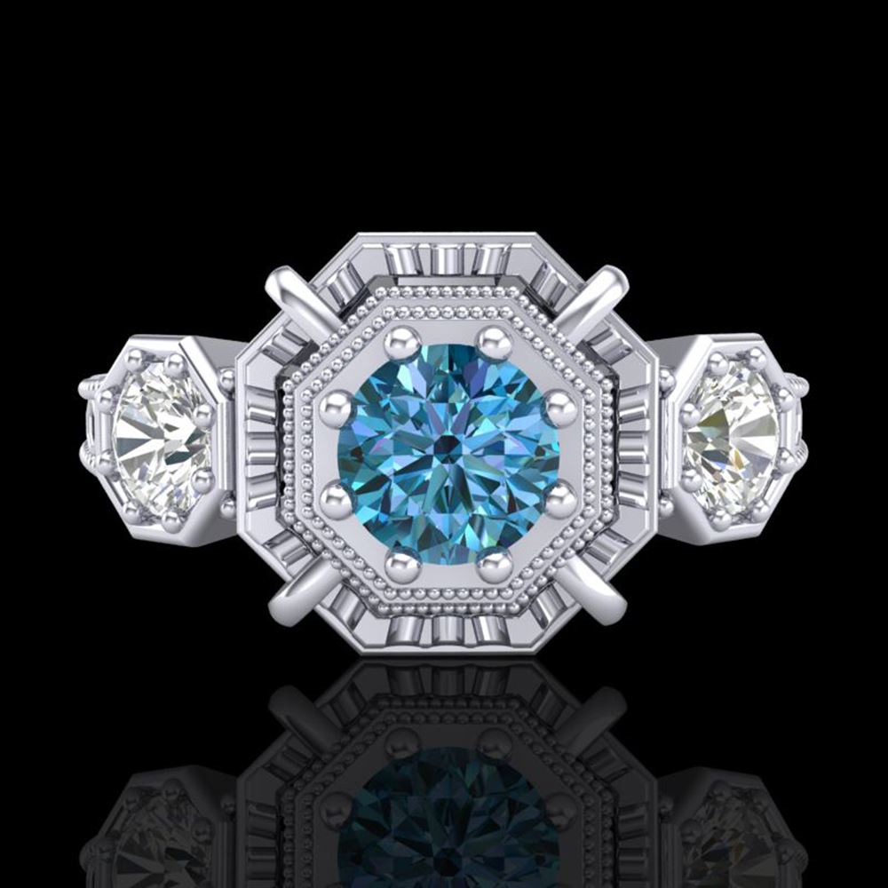 SKU: 37467 ---- 1.01 ctw Fancy Intense Blue Diamond Art Deco Ring 18k White Gold