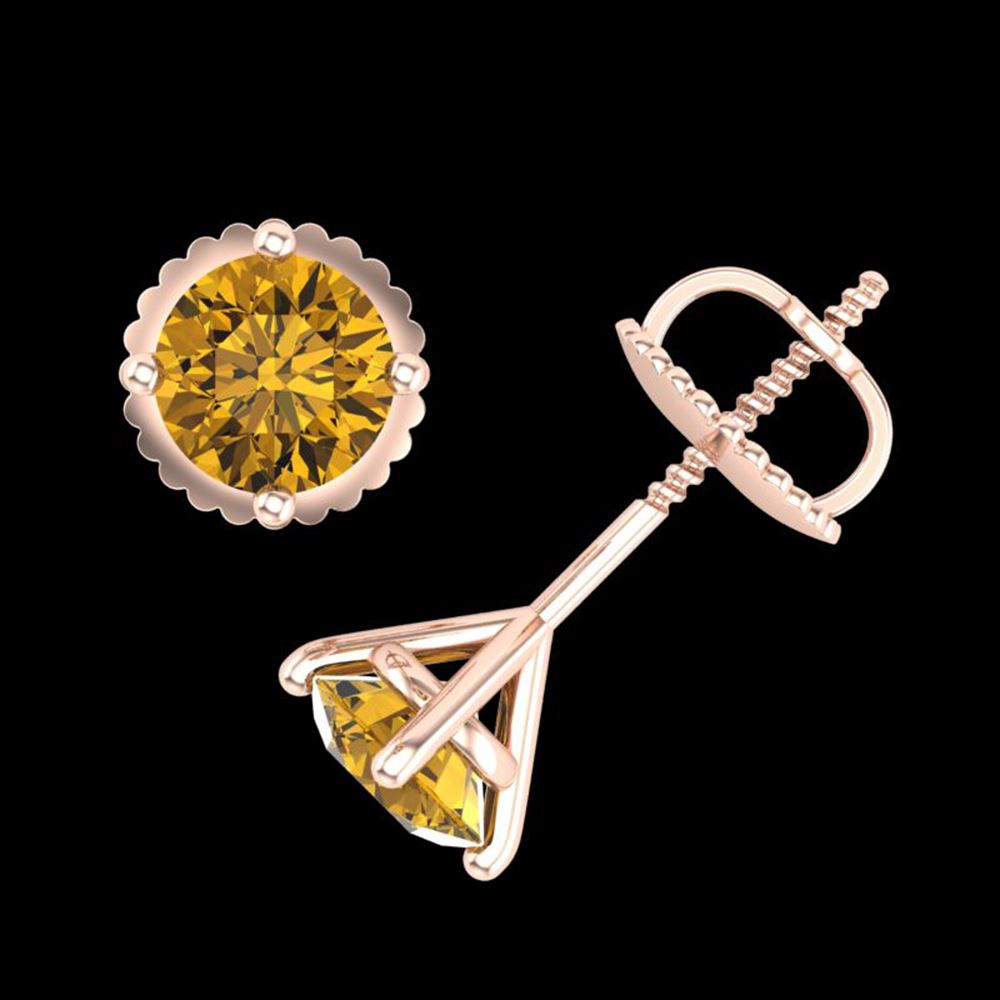REF-107H8R - SKU: 38233 ---- 1.01 ctw Intense Fancy Yellow Diamond Art Deco Earrings 18k Rose Gold