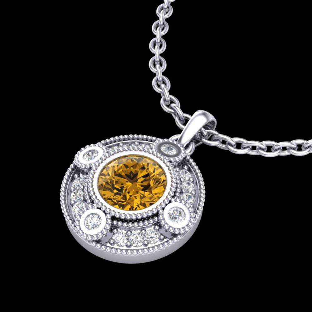 REF-136N4F - SKU: 37707 ---- 1.01 ctw Intense Fancy Yellow Diamond Art Deco Necklace 18k White Gold