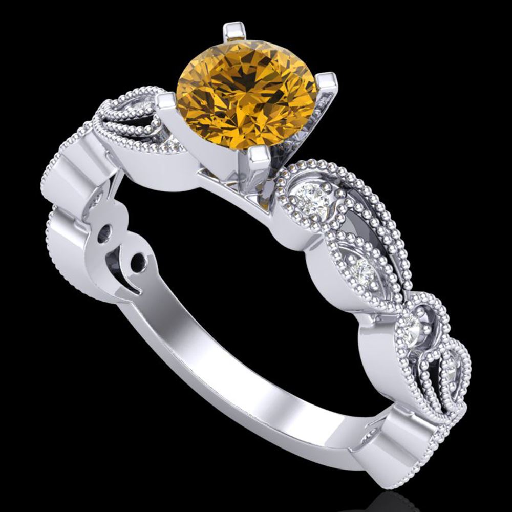 REF-143A6N - SKU: 38274 ---- 1.01 ctw Intense Fancy Yellow Diamond Art Deco Ring 18k White Gold