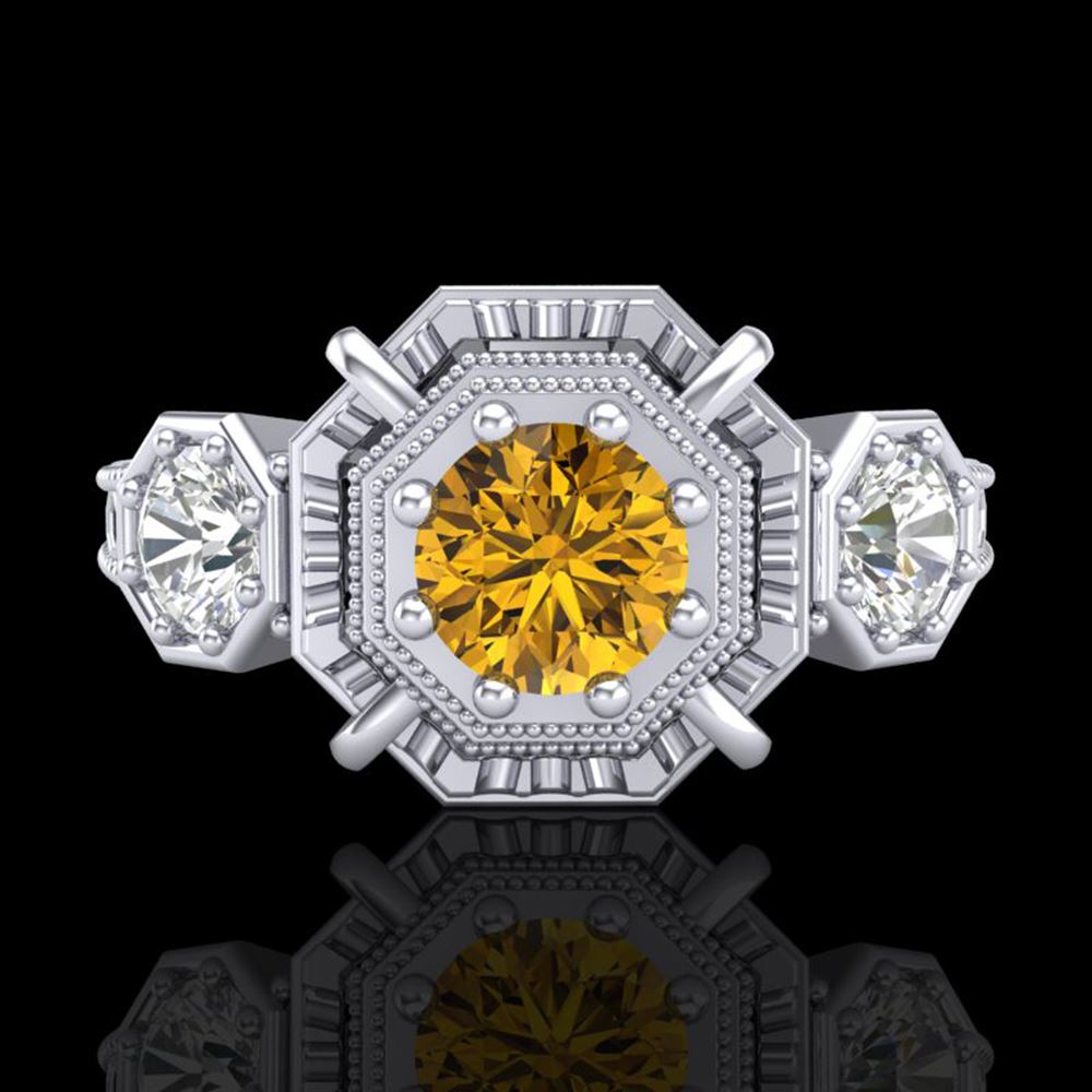 REF-178H2R - SKU: 37469 ---- 1.01 ctw Intense Fancy Yellow Diamond Art Deco Ring 18k White Gold