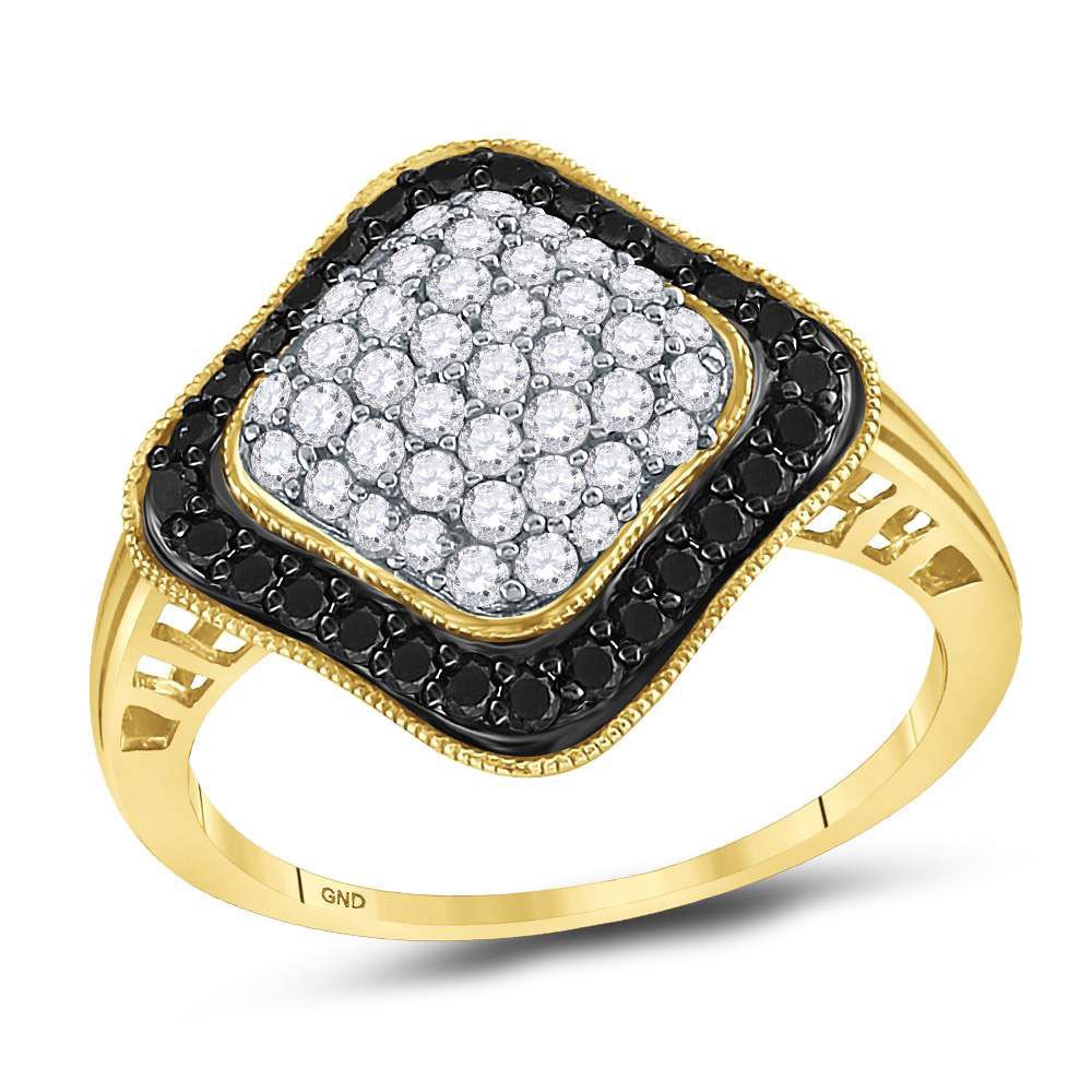 REF-36Y2X- SKU: GD75542 ---- 1.02 CTW Black Color Diamond Cluster Ring 10KT Yellow Gold