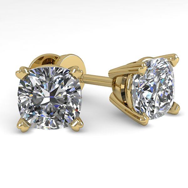 REF-180T2M -32290 ---- 1.02 CTW Cushion Cut VS/SI Diamond Stud Designer Earrings 18K Yellow Gold ---- Luxury Designer Brand Earring Appraised at $7,900 Certificate Number US32290 18k Yellow gold, Earring Size is Larger, Earring measuring approx. Uniform, weighing in total approx. 2 grams. Made in the USA and is stamped 18k, Main stone 1.02 carat total weight containing 2 pieces of H-J color with VS/SI quality CUSHION shape cut Diamond , Stone #2 carat total weight containing pieces of color with quality shape cut