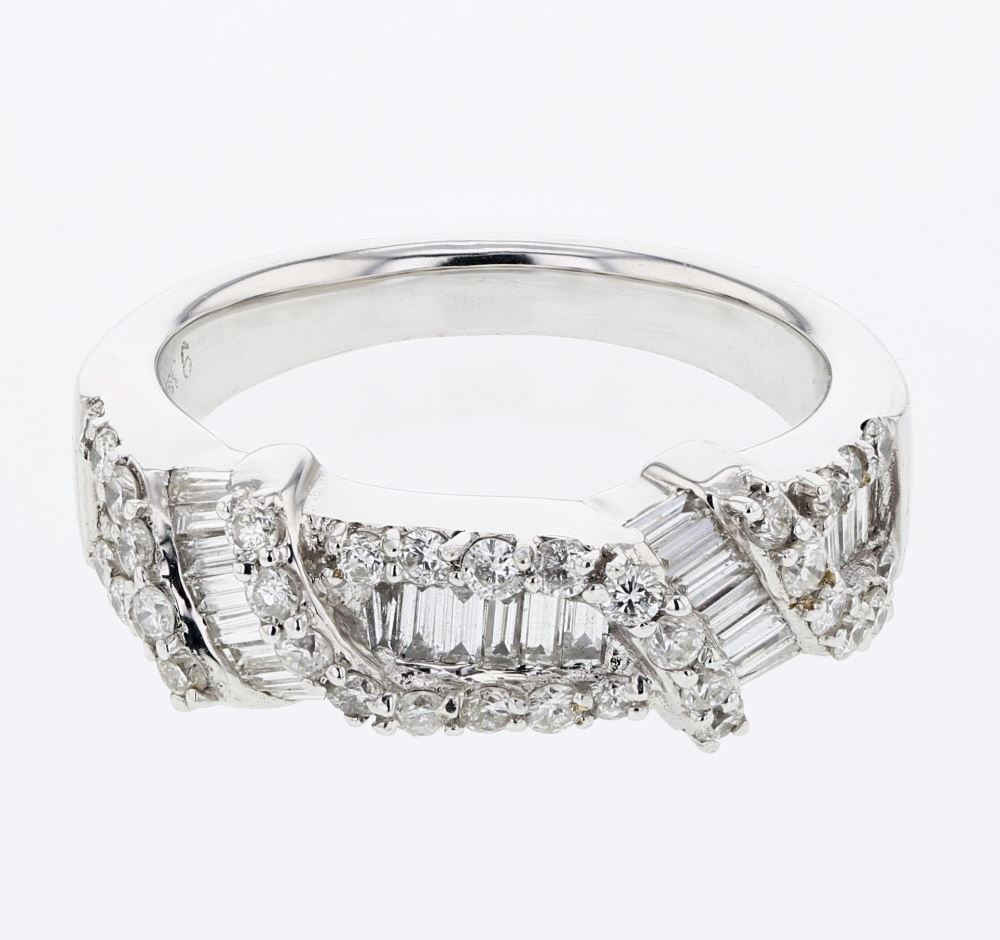 REF-121N2Y - JF228315 ---- 1.02 CTW White Round Diamond & Baguette Ring 18K White Gold