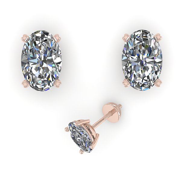 REF-148A5X -30588 ---- 1.02 CTW Oval Cut VS/SI Diamond Stud Designer Earrings 14K Rose Gold ---- Luxury Designer Brand Earring Appraised at $8,900 Certificate Number US30588 14k Rose gold, Earring Size is Larger, Earring measuring approx. Uniform, weighing in total approx. 2 grams. Made in the USA and is stamped 14k, Main stone 1.02 carat total weight containing 2 pieces of H-J color with VS/SI quality Oval shape cut Diamond , Stone #2 carat total weight containing pieces of color with quality shape cut