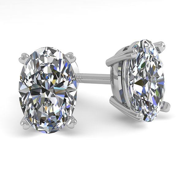 REF-180T2M -32274 ---- 1.02 CTW Oval Cut VS/SI Diamond Stud Designer Earrings 18K White Gold ---- Luxury Designer Brand Earring Appraised at $8,900 Certificate Number US32274 18k White gold, Earring Size is Larger, Earring measuring approx. Uniform, weighing in total approx. 2 grams. Made in the USA and is stamped 18k, Main stone 1.02 carat total weight containing 2 pieces of H-J color with VS/SI quality Oval shape cut Diamond , Stone #2 carat total weight containing pieces of color with quality shape cut
