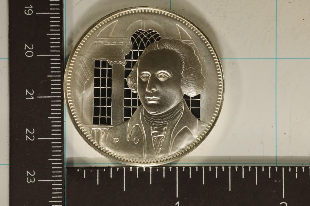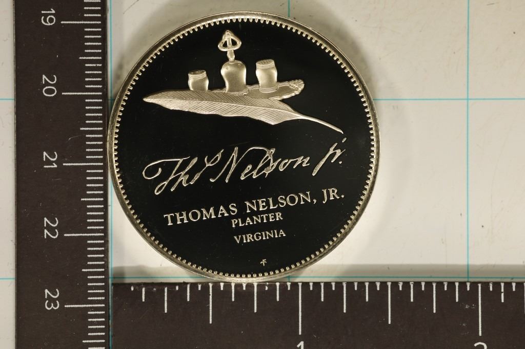 ROUND. PLANTER, VIRGINIA, OFFICIAL MEDAL OF THE BICENTENNIAL COUNCIL OF THE 13 ORIGINAL STATES, IN HARD PLASTIC CAPSULE