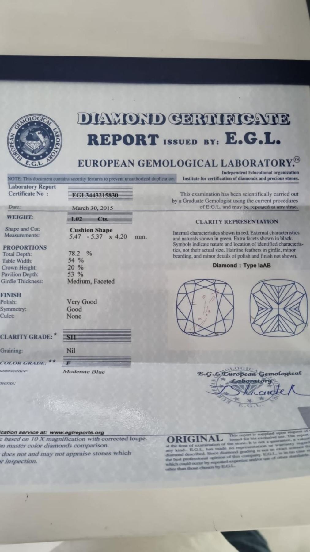 1.02 ct, Color F/SI1 EGL Graded Diamond