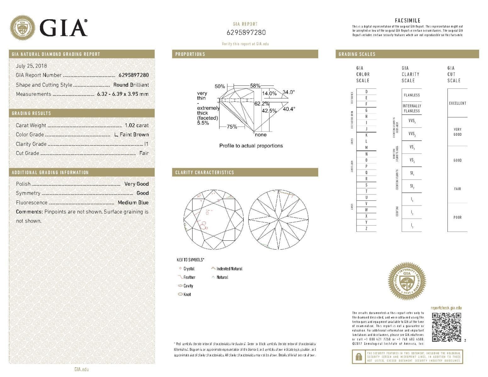 1.02 ct, Color L/I1 GIA Graded Diamond