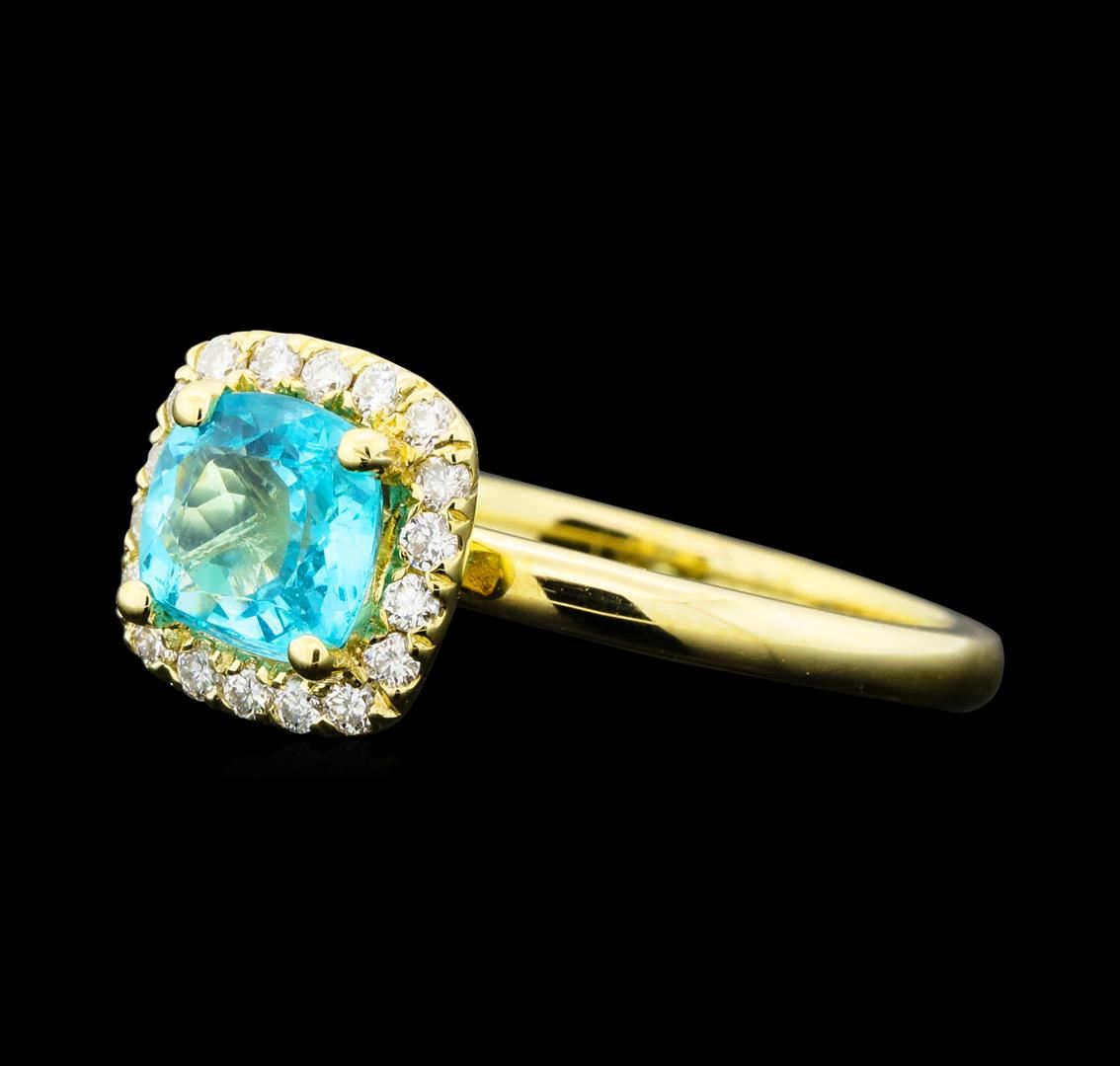 One ring featuring: 14KT yellow gold weighing 2.6 grams containing one apatite weighing 1.02ct and diamonds weighing 0.16ctw.
