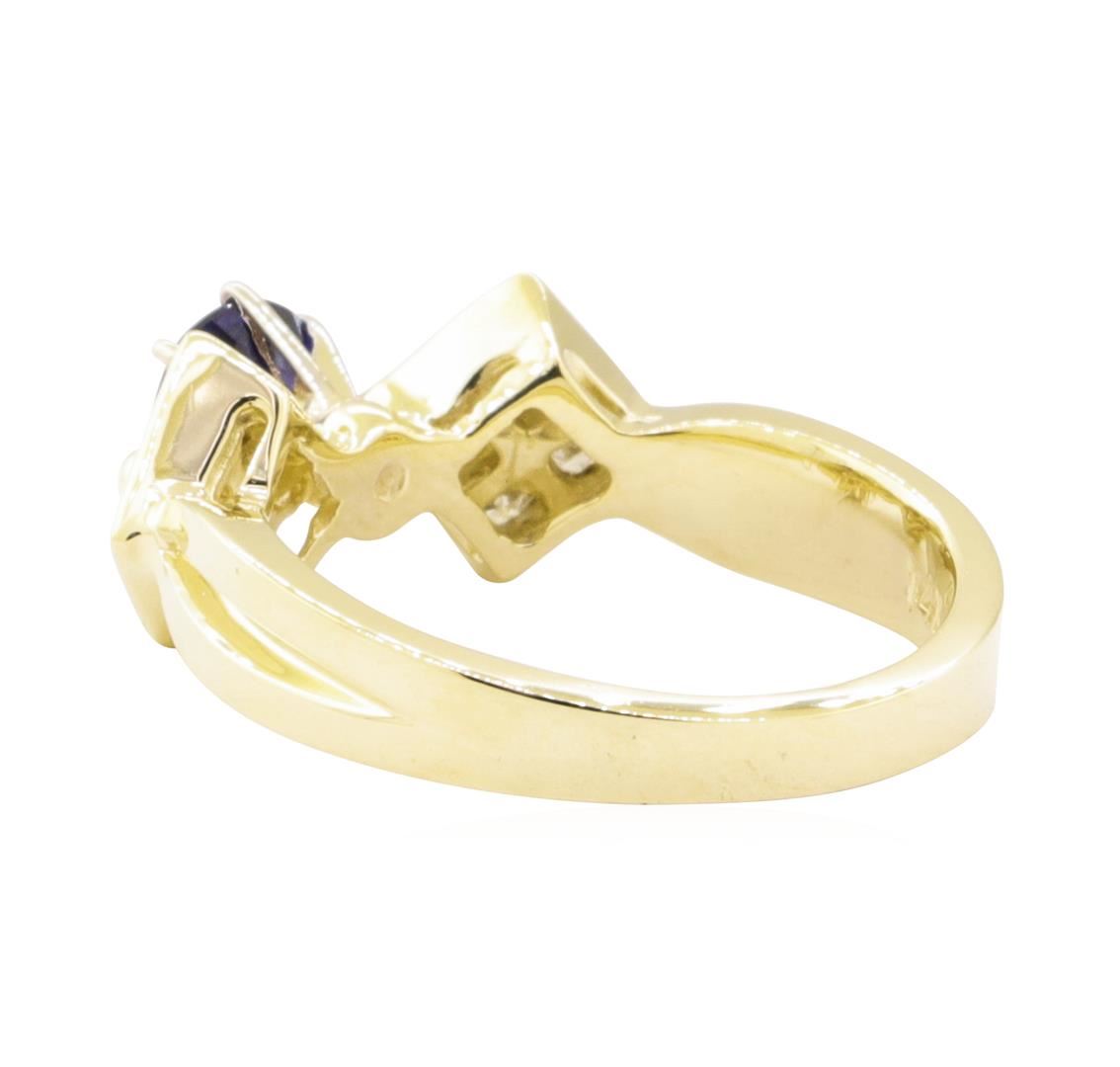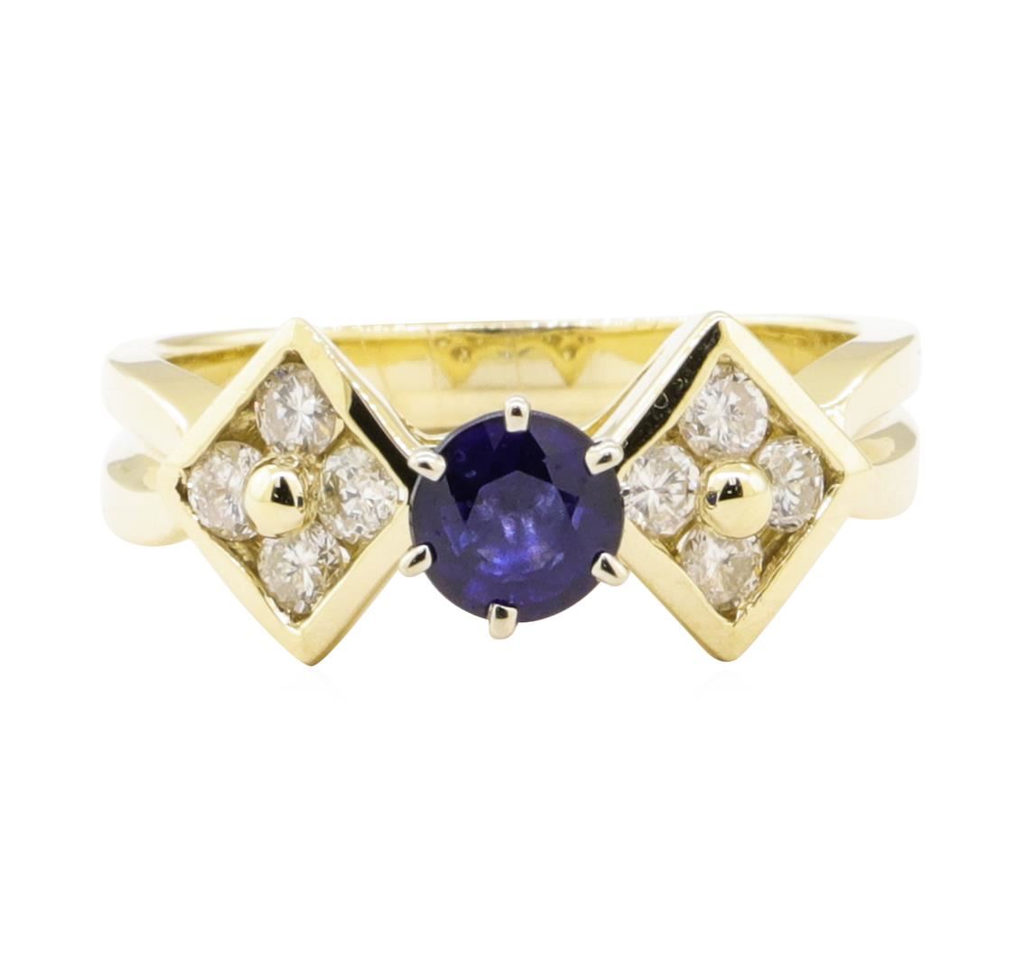One ring featuring: 14KT yellow gold weighing 4.6 grams containing one blue sapphire weighing 0.62ct and diamonds weighing 0.40ctw.