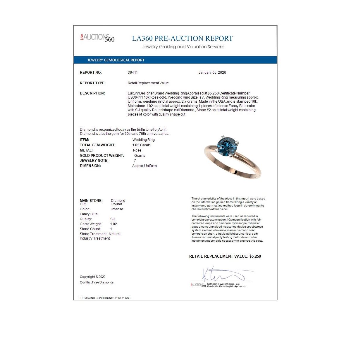 REF-92W2H - SKU: 36411 ---- 1.02 ctw Certified Intense Blue Diamond Engagment Ring 10k Rose Gold