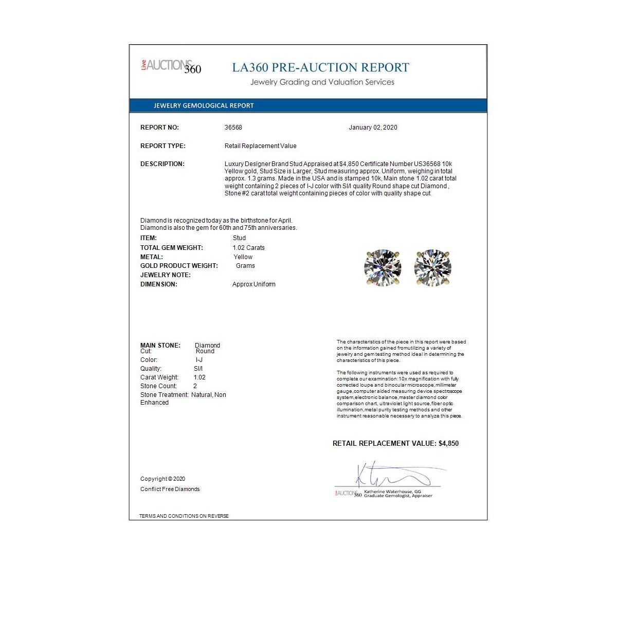 All sales are final, placing a bid is a legally binding obligation. All lots are sold as is, where is, with all the faults, imperfections, omissions and errors in the written description, estimates, appraisals, graphics and photography. USJL is not responsible for any errors or omissions in the description, graphics or photography provided or in the bidding software. Due diligence to verify the condition and description of a lot is the sole responsibility of the Bidder prior to placing any bid. Returns may only be made with the advance written authorization of USJL and are in USJL's sole discretion to approve. To request a return you must provide a written request fully explaining the basis for the return no later than 4 days after your receipt of the lot. Under no circumstances will any amounts other than the winning bid amount be refunded. A restocking charge of 19% of the full invoice amount may apply in USJL 's sole discretion. Any allowed returns must be received in exactly the same condition as when originally shipped to Buyer, or they will be returned to buyer at Buyer's cost. Any unauthorized returns will be refused. DELIVERY REFUSAL OF ITEMS SHIPPED BY US JEWELRY LIQUIDATION TO THE BIDDER CONSTITUTES AN UNAUTHORIZED RETURN IN DIRECT VIOLATION OF THESE GENERAL TERMS AND CONDITIONS.