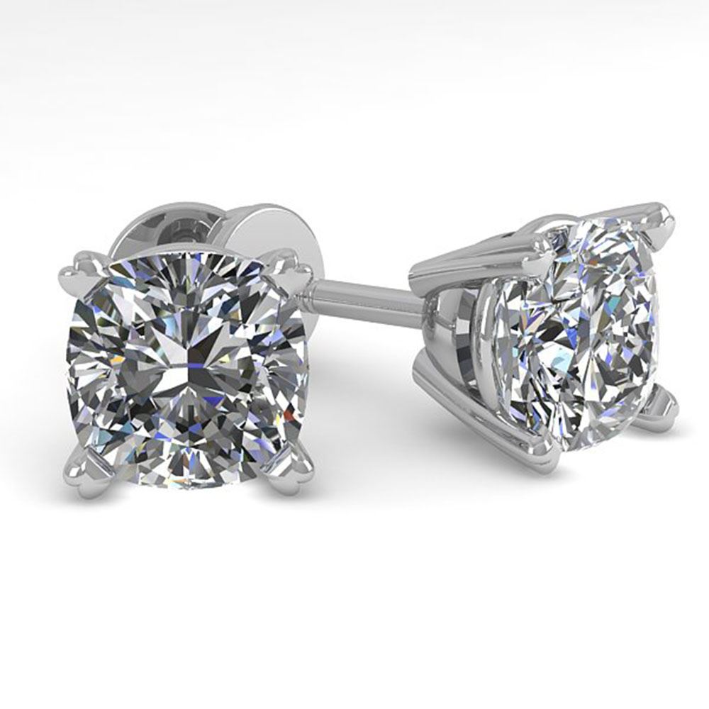 REF-121R5K - SKU: 32148 ---- 1.02 ctw Cushion VS/SI Diamond Stud Designer Earrings 14k White Gold