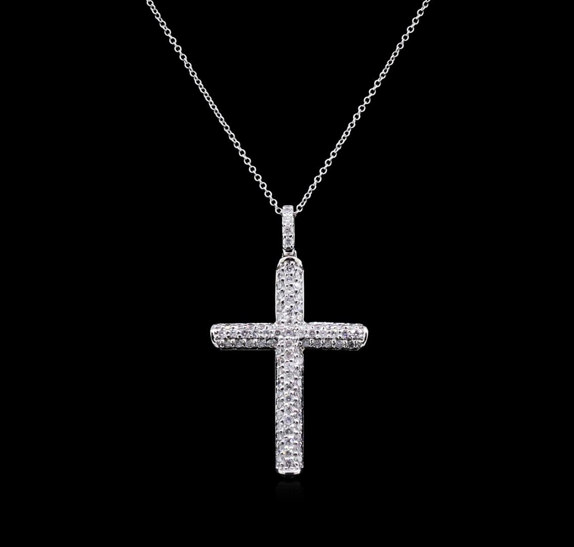 One cross pendant featuring: 14KT white gold weighing 4.05 grams containing diamonds with a total weight of 1.02ct.