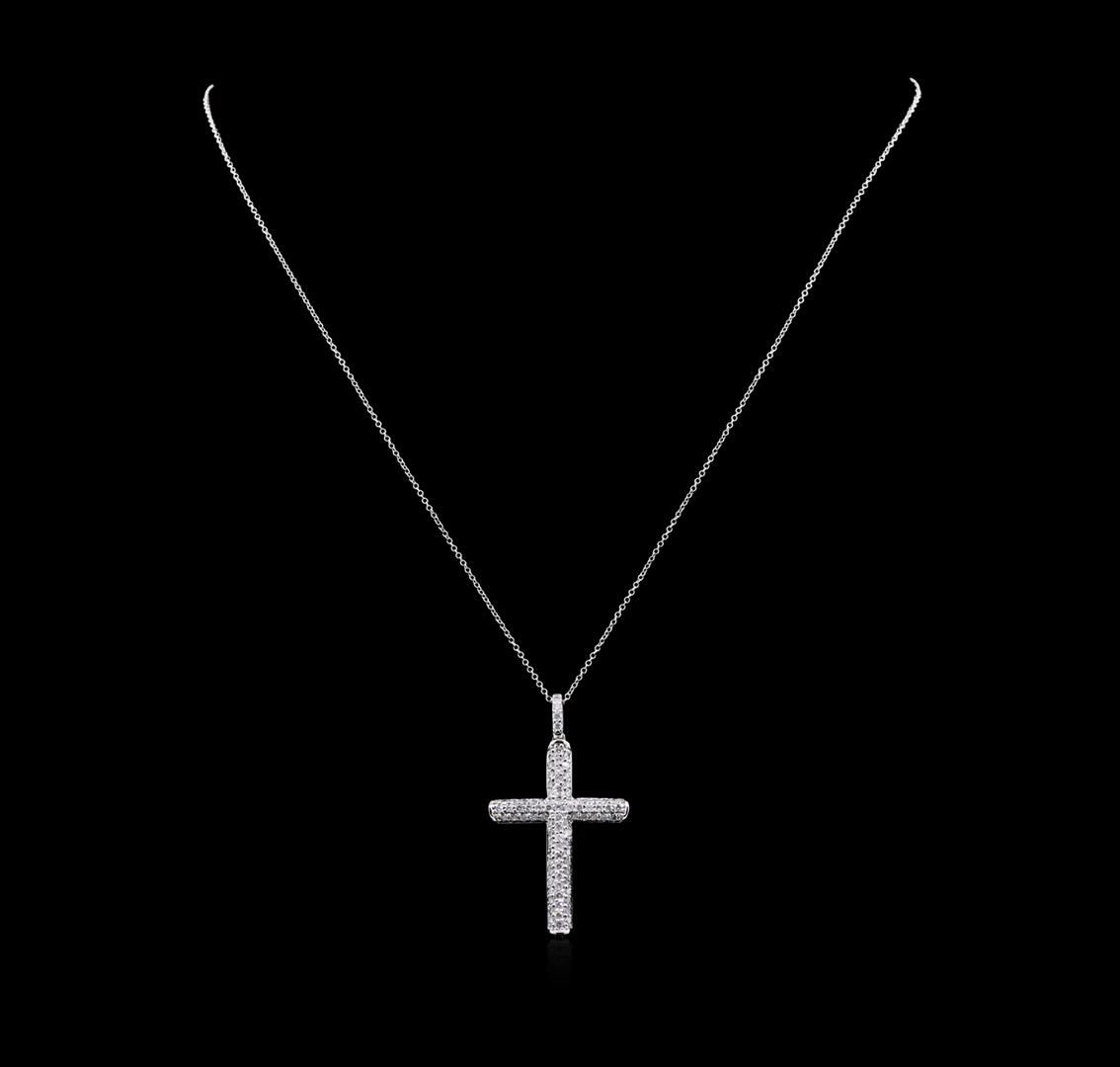 One cross pendant featuring: 14KT white gold weighing 4.05 grams containing diamonds with a total weight of 1.02ct.