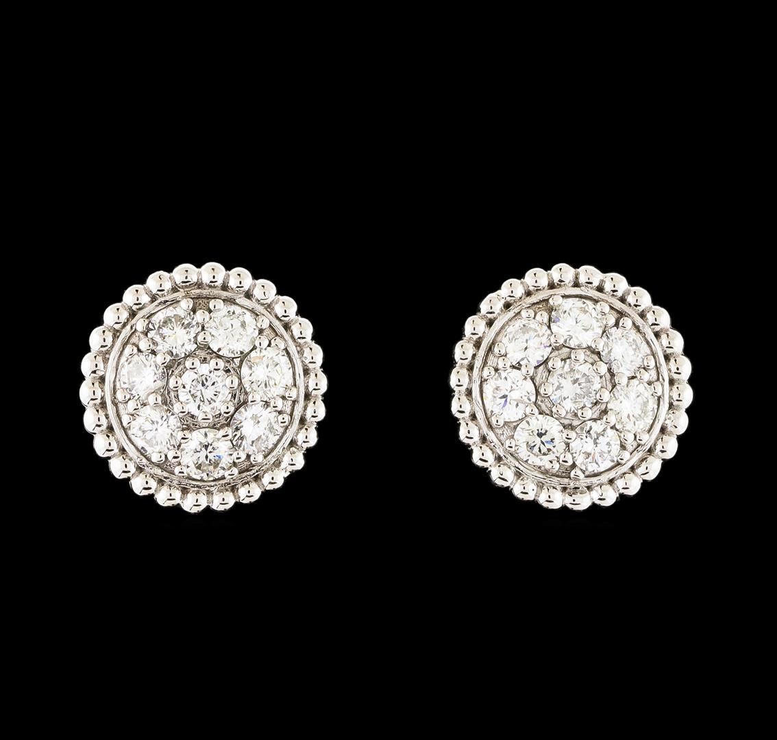 One pair of Diamond Earrings featuring: 14KT White Gold with a total weight of 4.45 grams and 16 Diamonds with a total weight of 1.02ctw.